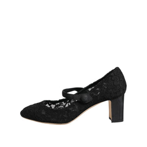 Dolce & Gabbana Black Mary Jane Taormina Lace Pumps Shoes