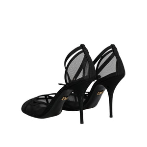 Dolce & Gabbana Black Mesh Ankle Strap Heels Pumps Shoes