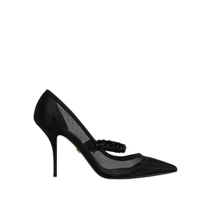 • Dolce & Gabbana Black Mesh Mary Jane Crystal Heel Pump Shoes