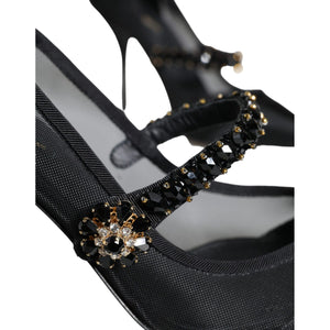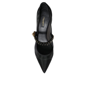 Dolce & Gabbana Black Mesh Mary Jane Crystal Heel Pumps Shoes