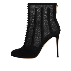 Dolce & Gabbana Black Mesh Stiletto Heels Ankle Boots Shoes
