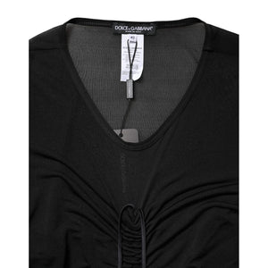 Dolce & Gabbana Black Mesh Trim Bodycon Long Sheath Dress