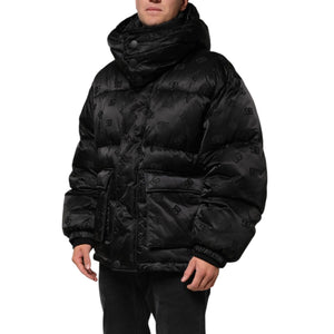 Dolce & Gabbana Black Monogram Logo Puffer Nylon Hooded Jacket