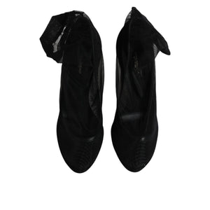 Dolce & Gabbana Black Nylon Stretch Mesh Sock Boots Shoes