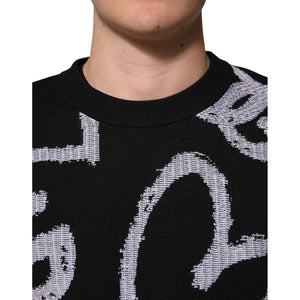 Dolce & Gabbana Black Nylon Wool Heart Print Pullover Sweater