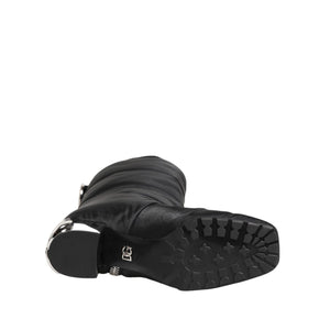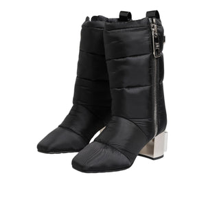 Dolce & Gabbana Black Padded Mid Calf Logo Heel Boots Shoes