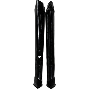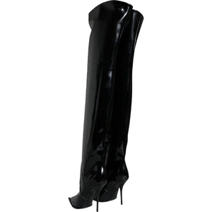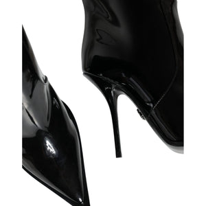 حذاء طويل حتى الركبة من الجلد الأسود اللامع من دولتشي آند غابانا