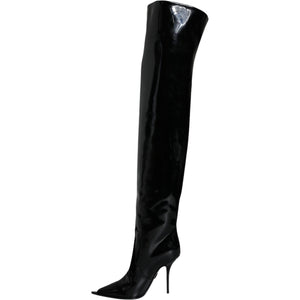 حذاء طويل حتى الركبة رائع وجديد تمامًا، مصنوع من الجلد اللامع الأصلي بنسبة 100% من دولتشي آند غابانا.