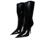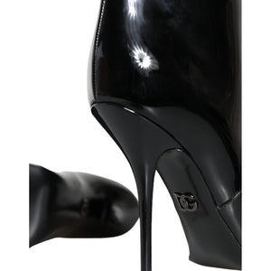 حذاء دولتشي آند غابانا من الجلد اللامع الأسود بطول منتصف الساق