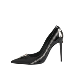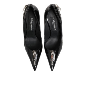 Dolce & Gabbana Black Patent Leather Zipper Heels Pumps Shoes