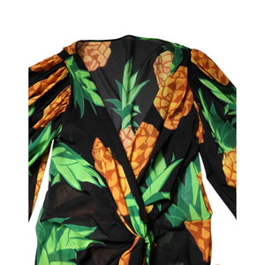 Dolce & Gabbana Black Pineapple Print Silk Wrap Mini Dress