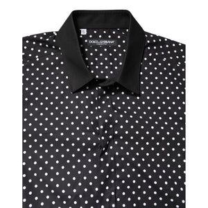 Dolce & Gabbana Black Polka Dot Cotton Formal Dress Shirt