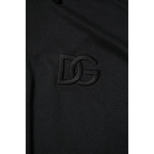 Dolce & Gabbana Black Polyester DG Logo Collared Polo T-shirt