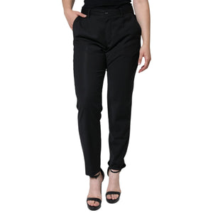 Dolce & Gabbana Black Polyester High Waist Tapered Pants