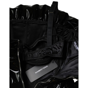 Dolce & Gabbana Black Polyester Ruched Coated Mini Dress