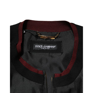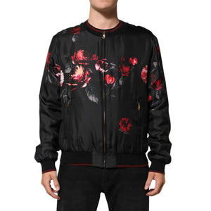 Dolce & Gabbana Black Red Floral Silk Bomber Blouson Jacket