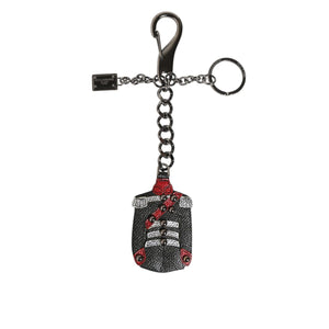 Dolce & Gabbana Black Red Military Leather Patch DG Logo Keychain Keyring