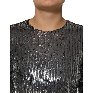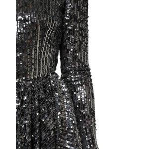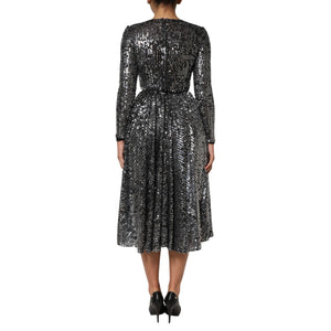 Dolce & Gabbana Black Sequined Long Sleeves Midi A-line Dress