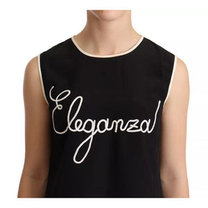 Dolce & Gabbana Black Silk Eleganza Print Sleeveless Tank Top