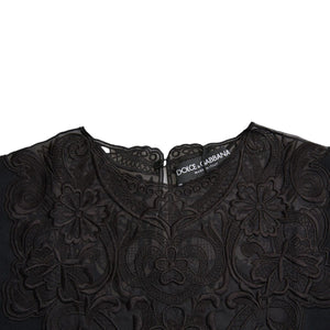 Dolce & Gabbana Black Silk Lace Trim Long Sleeves Blouse Top