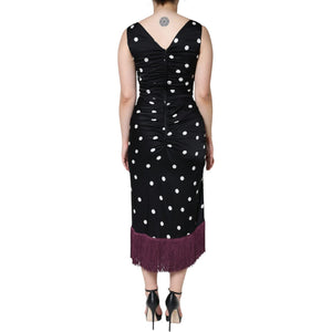 Dolce & Gabbana Black Silk Polka Dot V-neck Tassel Midi Dress