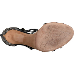 Dolce & Gabbana Black Strass Ankle Strap Heels Sandals Shoes