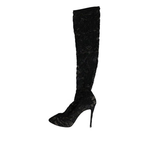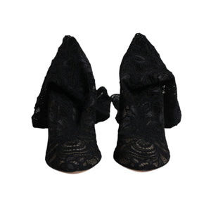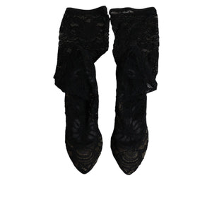 Dolce & Gabbana Black Stretch Socks Taormina Lace Boots Shoes