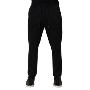 Dolce & Gabbana Black Stripes Viscose Skinny Dress Men Pants