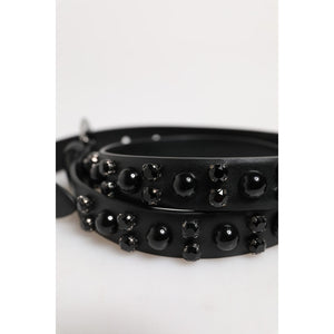Dolce & Gabbana Black Studded Leather Metal Logo Buckle Belt