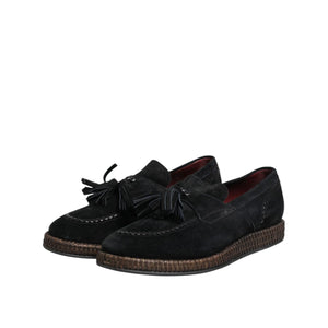 Dolce & Gabbana Black Suede Tassel Embellished Loafers Shoes
