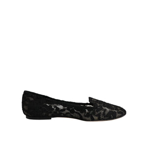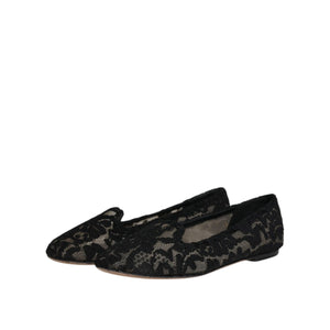 Dolce & Gabbana Black Taormina Lace Slip On Flats Shoes