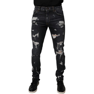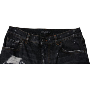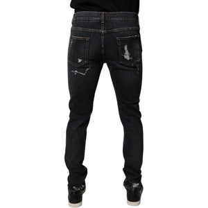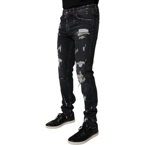 Dolce & Gabbana Black Tattered Cotton Skinny Men Denim Jeans
