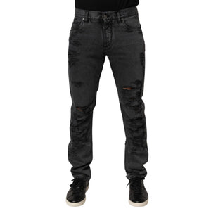 Dolce & Gabbana Black Tattered Skinny Cotton Men Denim Jeans