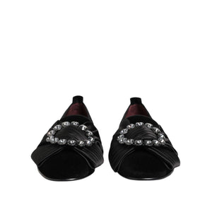Dolce & Gabbana Black VATICANO Crystal Ribbon Slip On Shoes