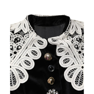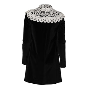 Dolce & Gabbana Black Velvet Lace Collared Embellished Dress