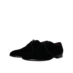 Dolce & Gabbana Black Velvet Leather Lace Up Derby Shoes