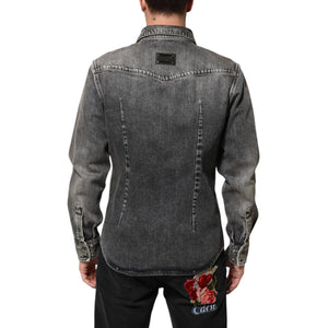 Dolce & Gabbana Black Washed Cotton Snap Long Sleeve Casual Shirt