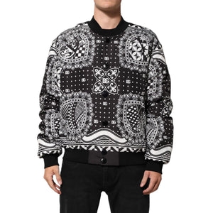 Dolce & Gabbana Black White Bandana Print Bomber Jacket
