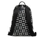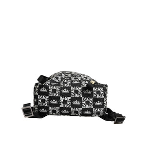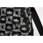 Dolce & Gabbana Black White Crown Printed Nylon School Backpack Bag