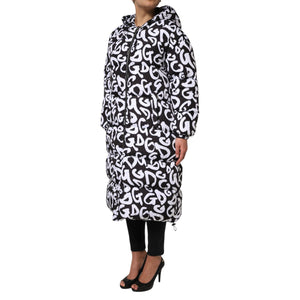 Dolce & Gabbana Black White DG Mania Hooded Long Coat Jacket