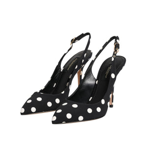 Dolce & Gabbana Black White Dotted Stiletto Slingback Shoes