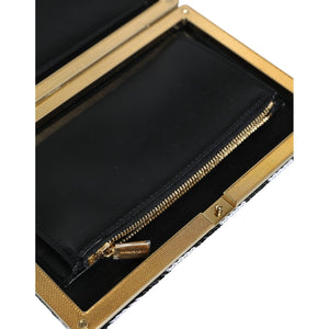 حقيبة كلاتش للحفلات المسائية من دولتشي آند غابانا بإطار ذهبي أبيض أسود