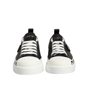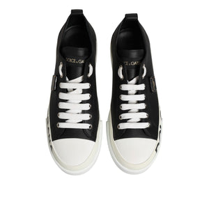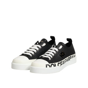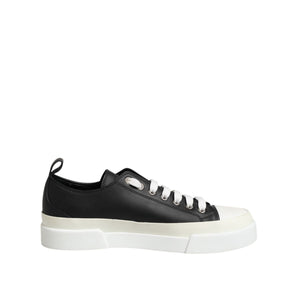 Dolce & Gabbana Black White Leather Low Top Sneakers Shoes