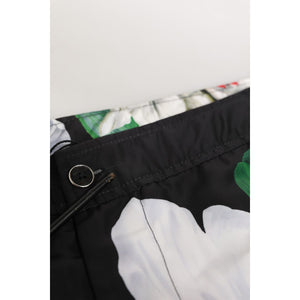 Dolce & Gabbana Black White Polyester Floral Orchid Print Shorts