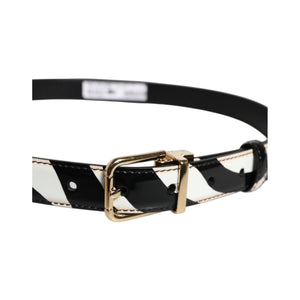 Dolce & Gabbana Black White Zebra Gold Metal Logo Buckle Belt