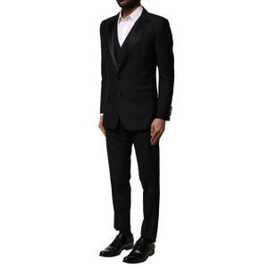 Dolce & Gabbana Black Wool 3 Piece Single Breasted Suit