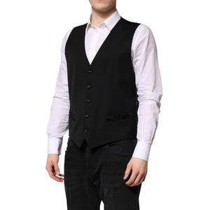 Dolce & Gabbana Black Wool Dress Formal Men Waistcoat Vest
