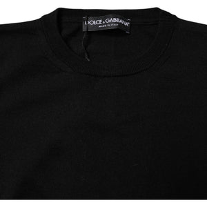 Dolce & Gabbana Black Wool Knit Crew Neck Pullover Sweater
