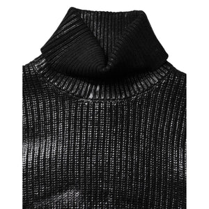 Dolce & Gabbana Black Wool Long Sleeve Turtleneck Cropped Top