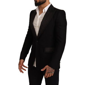 Dolce & Gabbana Black Wool Slim Fit Coat Blazer Jacket